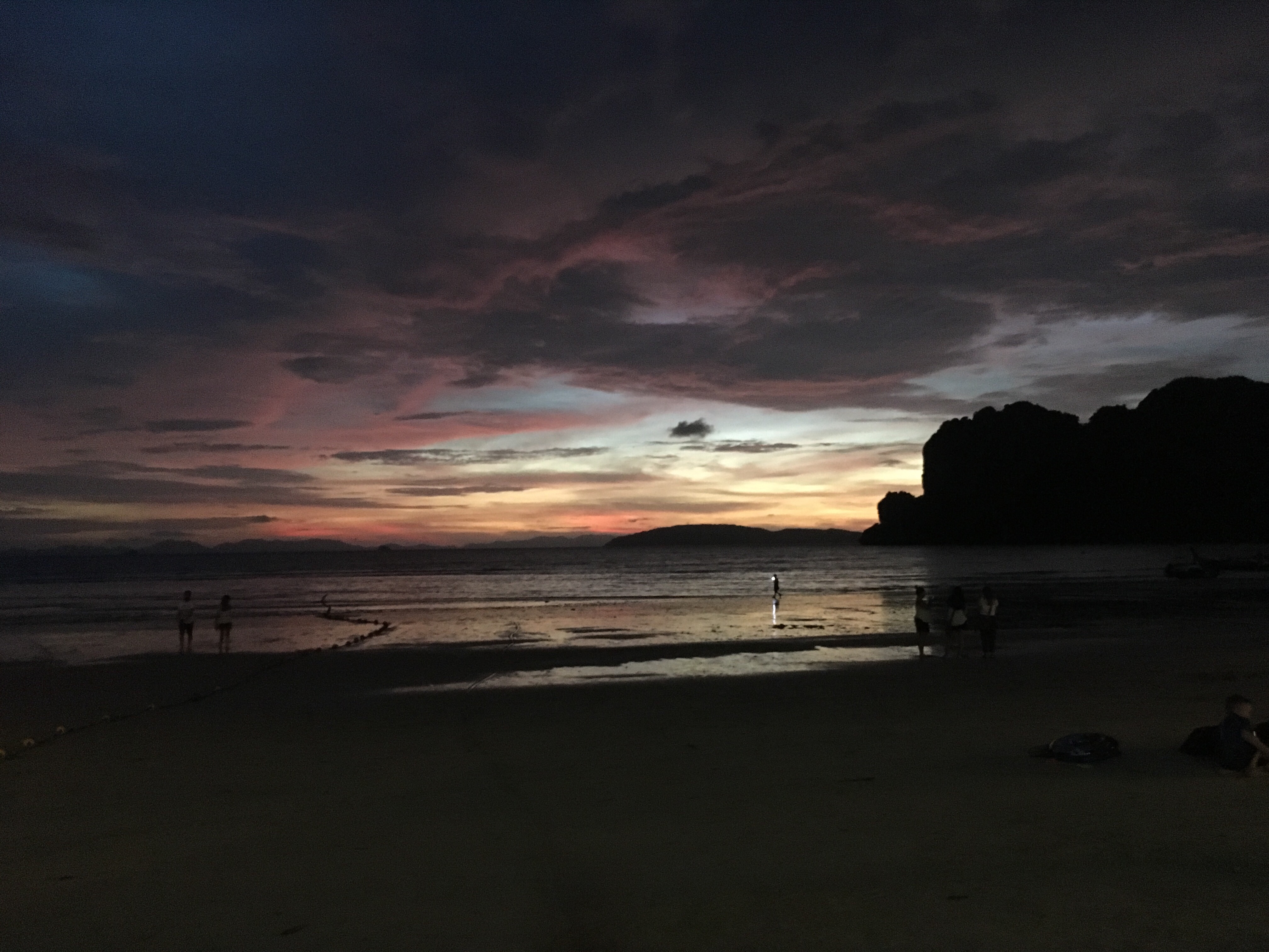 The whole world was gilded with this beautiful golden light, the sand was flat from the tide retreating earlier and looked like a mirror. The sea glittered. There’s was music coming from the restaurants along the edge of the beach. The air smelled like salt, delicious Thai food and summer. All around me there were people relaxing, enjoying their holiday.