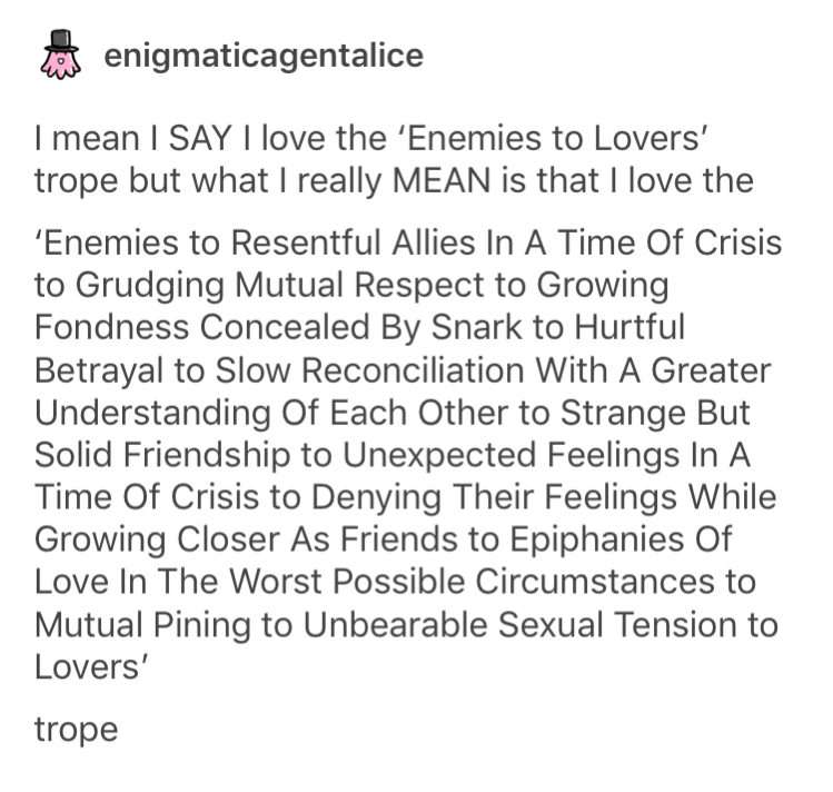 As I may have mentioned, I’ve gotten really into the ACOTAR books lately, which contains all the fantastic romance tropes I love, so I thought, why not make an absolutely unhinged blog about my favourite romance tropes in books?