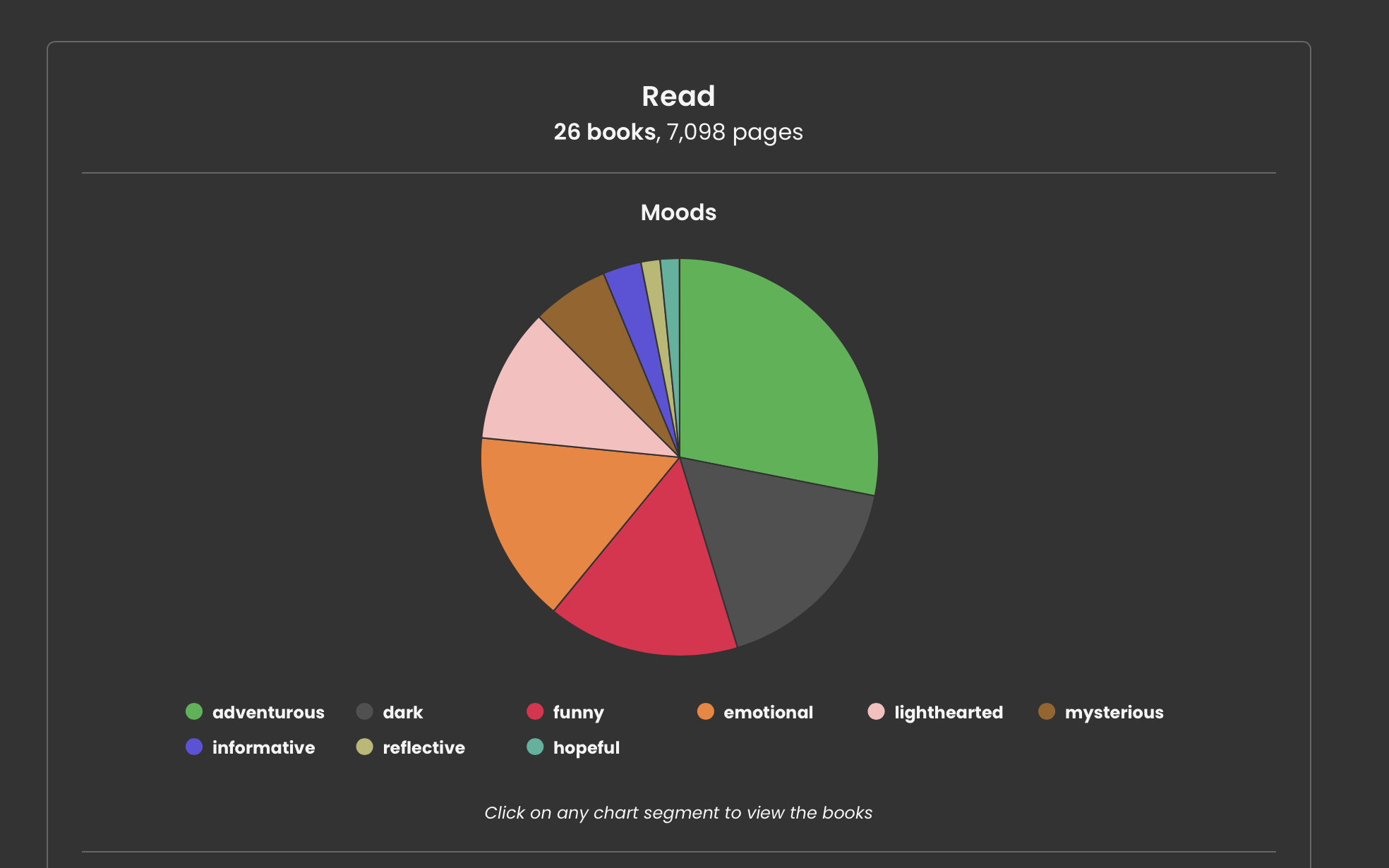 Let’s bust out the Storygraph stats: