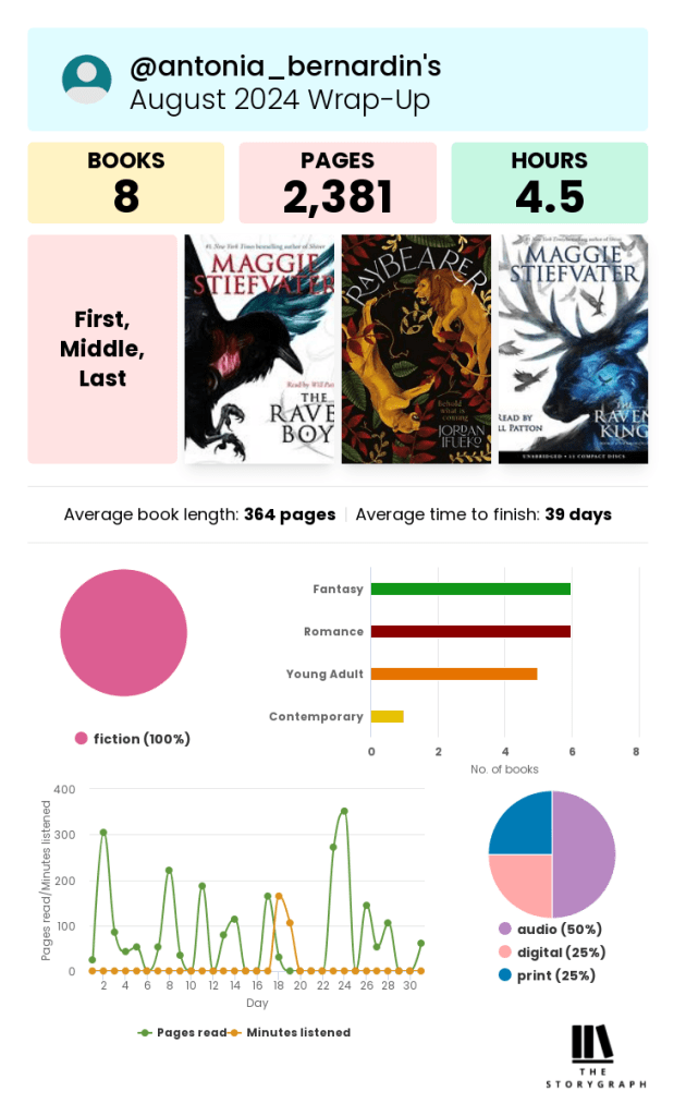 Since Storygraph has got this awesome new feature making monthly summary graphics, I thought I’d cannibalise so I could share with you a wrap-up of everything I’ve read this month.