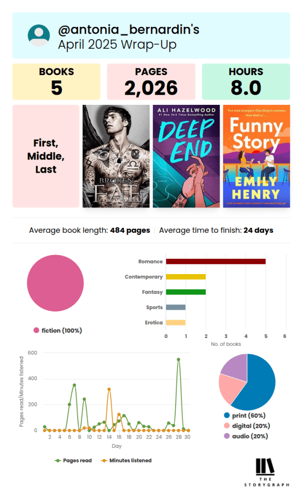Storygraph produce these beautiful monthly wrap graphics, so rather than a boring list, enjoy!
